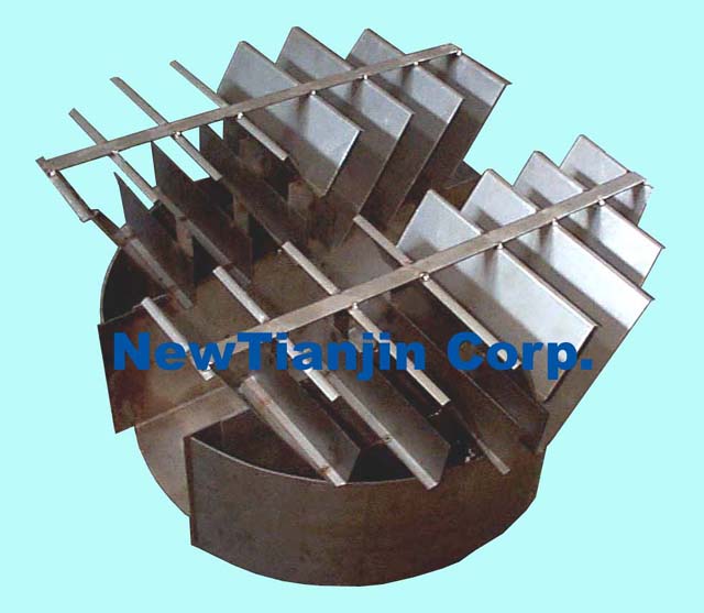 These devices are used to collect liquid from upper bed for redistribution or drawoff as side-product or pumparound. They are designed to give low pressure drop and collect all the upper bed liquid. It's very important to mix all the liquid and provide a uniform composition for redistribution. Chevorn type and riser type are in common use.